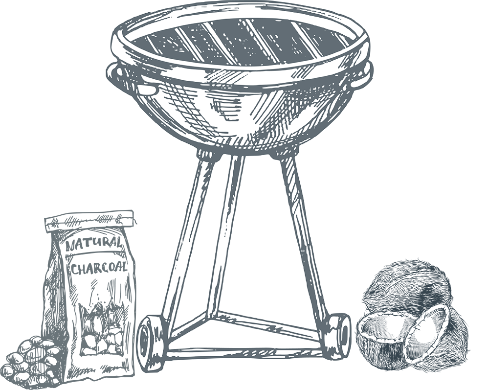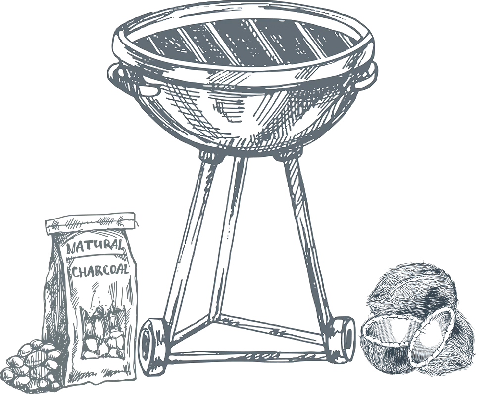 Nicht jede Kohle ist gleich. Herkömmliche Holzkohle setzt beim Verbrennen Schadstoffe frei – direkt in die Luft und auf die Lebensmittel. Unsere Kokoskohle nicht: Sie brennt länger, sauberer und hinterlässt keine Rückstände. Kein Rauch, den man bereut. Dafür mit einem Erlebnis, das man schmeckt.